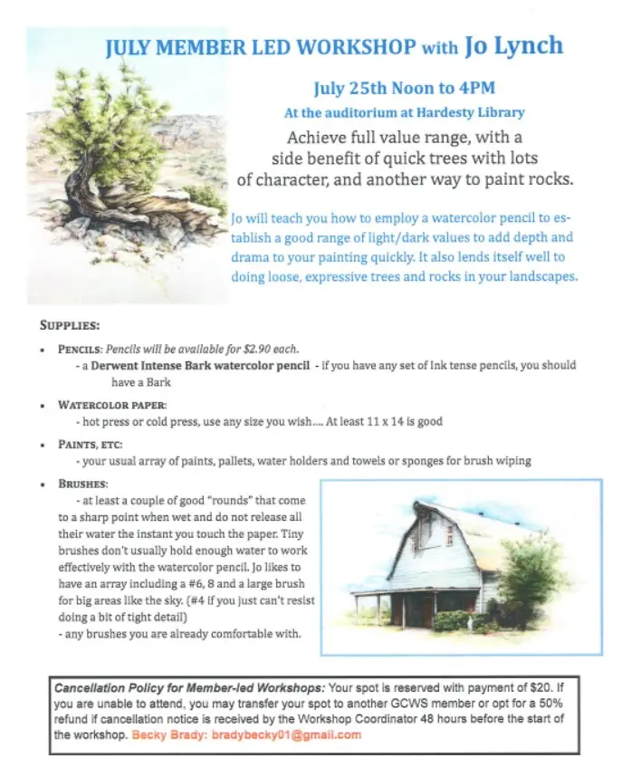 Workshops – Member Led June 28, 2025Arts@302 April 11, 20251 – 5 pmHardesty LibraryPecan Room8316 E 93rd St, Tulsa * This workshop is only available to GCWS members * * link to sketch here *